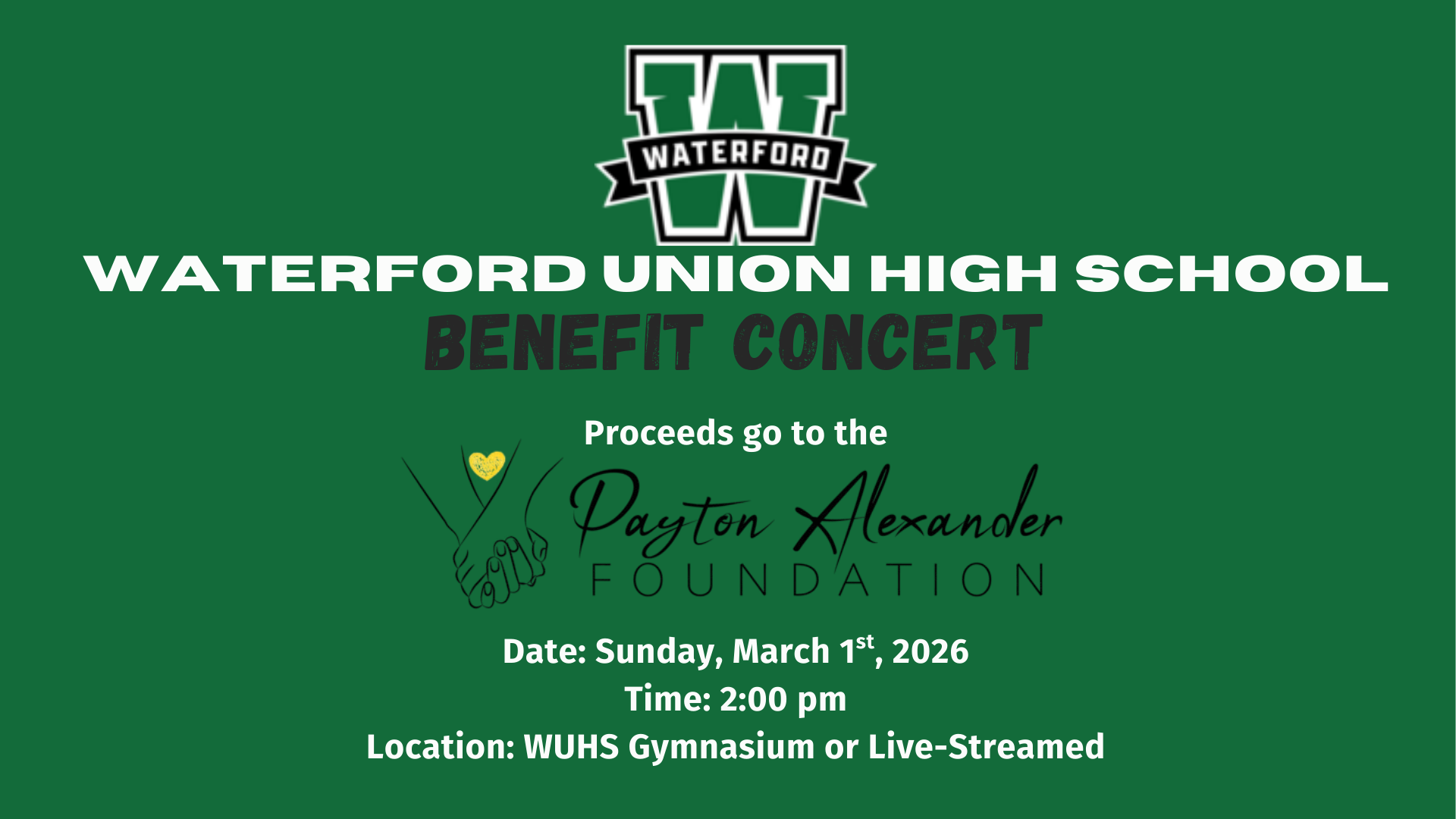 The Payton Alexander Foundation is grateful to have be chosen for the 12th annual Benefit Concert this SUNDAY, MARCH 1 in the Main Gym.